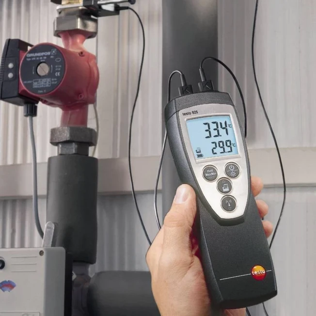 DESCRIPTION:With this set for the sectors of heating engineering, sanitation, refrigeration and air conditioning technology, you will be ready to begin work straight away. With its two connectable probes, the 2-channel testo 922 temperature measuring instrument measures temperatures in parallel and can determine the differential temperature in a matter of seconds. Once the measurement is complete, you can safely store your equipment in the handy bag supplied.