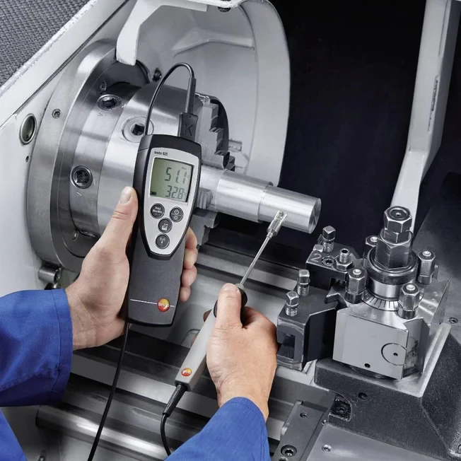 The surface temperature probe (thermocouple type K) features a thermocouple strip, which guarantees a fast response time and enables measurements to be carried out on uneven surfaces.