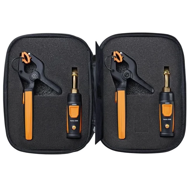 EQUIPMENT INCLUDES:● 2x Testo 549i high-pressure measuring instrument with smartphone operation, including batteries and calibration protocol● 2x Testo 115i clamp thermometer with smartphone operation, including batteries and calibration protocol ● Testo Smart Case “Refrigeration”, including foam insert TESTO 549I - HIGH-PRESSURE GAUGE OPERATED VIA SMARTPHONE Testo offers you greater mobility when measuring and used in conjunction with your smartphone or tablet. The handy testo 549i high-pressure gauge is suitable for carrying out wireless servicing and troubleshooting on air conditioning and refrigeration systems, as well as for installing them. The measuring instrument can be quickly and easily attached directly to the pressure connection. The testo 549i makes it considerably easier to work on pressure connections that are a long distance apart, thanks to wireless connection to a smartphone or tablet. Also practical, since no hoses are needed for the measurements, no refrigerant is lost, or only a very small quantity. When used in conjunction with the testo 115i clamp thermometer, individual refrigeration system parameters can also be calculated. |