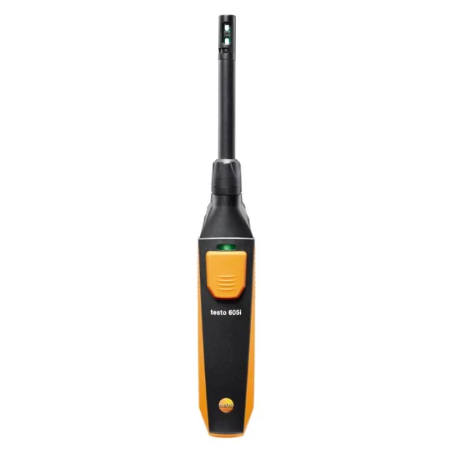 TESTO 605I - THERMOHYGROMETER OPERATED VIA SMARTPHONE:In addition to measuring air temperature and relative humidity in rooms and ducts, the thermohygrometer is also suitable for checking air conditioning system humidifiers. When you use the testo 605i in conjunction with the testo 805i infrared thermometer, you can clearly identify areas susceptible to mould via the traffic light principle, with the assistance of a measurement menu that is already stored in the app. |