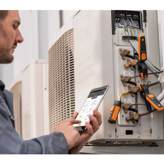 DESCRIPTION:For refrigeration engineers: The kit contains two testo 549i high-pressure gauges, two testo 605i thermohygrometers and two testo 115i clamp thermometers. Used in conjunction with your smartphone/tablet, the kit is ideal for servicing, troubleshooting and installing air conditioning and refrigeration systems. The testo Smart Probes App makes your work easier and more efficient. Over 90 stored refrigerants, automatic calculation of superheating/subcooling, target superheat and cooling/heating power, emailing of measurement data reports as PDF or Excel files.
