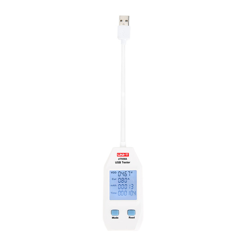 Description: The second generation UT658 series USB testers can inspect USB chargers, portable power sources, USB type A and C cables and other electronic charging devices. UT658 measures output voltage, current, energy, capacity, circuit equivalent resistance, D+ and D- voltages of USB data cables. This series is designed to be precise, reliable, stable, and portable. They are great tools for applications such as manufacturing verification, engineering testing, and DIYers.