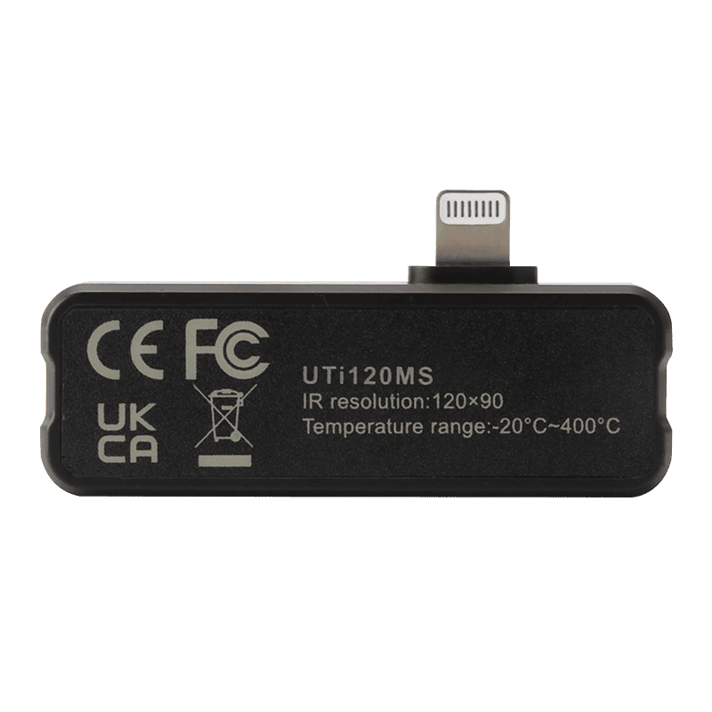 | Description: UTi120MS is a professional smartphone thermal camera module for iPhone, which is compact, portable, and easy to operate through connecting with mobile phones. UTi120MS provides clear image with a fast response, and can also detect temperature up to 400℃. Users can troubleshoot HVAC problems or investigate heat source issues around the house faster and easier with this thermal camera module. It is a perfect tool for DIY homeowners,outdoor lovers, engineers, contractors and builders etc. |